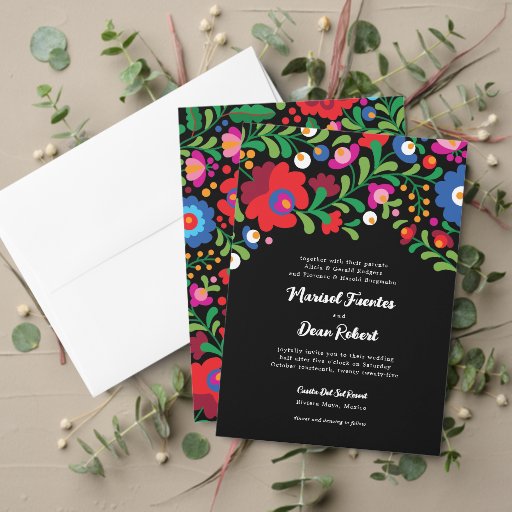 This large tapestry backdrop features a scatter pattern of flowers and foliage inspired by the colourful embroidery of native Mexican artisans and is a beautiful and on theme addition to wedding showers or events where guests can take photos to celebrate the event.