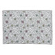 Pattern with illustrations of black and white daisies with colourful centres in yellow, pink and blue.
