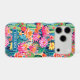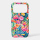 Customise this colourful watercolor iPhone 17 pro case featuring cacti with beautiful blooms in pinks, oranges, reds and yellows with your name in a modern CAP font in white on teal. It's so modern and trendy!