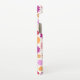 Colourful flower pattern in yellow, orange, pinks, lilac and reds on a cream colour background.
