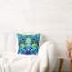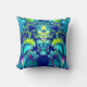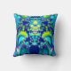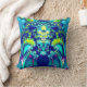 Abstract fractal art throw pillow in vibrant colours: blue, cyan, green, and purple.