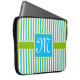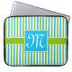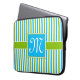 Colourful Blue and Green Stripe Pattern Monogram Laptop Sleeve