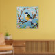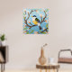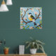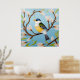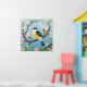 Colourful Blue Bird Perching on a Blossoming Branc Poster