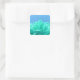 Colourful Blue Green Floral Square Sticker