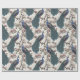 This Colourful Blue Peacock & Magnolia Wildlife Wrapping Paper features a in Chinoiserie style pattern of hand-drawn blue and teal peacocks perched on Magnolia tree branches in bloom on an elegant ivory background.