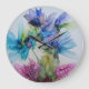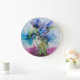 Colourful Blue Purple Pink Green Floral Art Large Clock