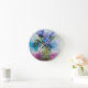 Colourful Blue Purple Pink Green Floral Art Round Clock