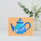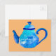Colourful blue teapot watercolor postcard