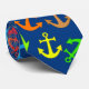 Decorative boat anchor pattern in many colours, sizes and angles. Custom neck ties. Blue background.