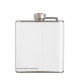 The flask itself is fine. It’s a cheap flask, obviously bought in bulk, however am prepared to overlook that. Given that it is a personalized item, I would have liked to have seen gift boxing instead of the generic packaging. Terrible printing, and/or quality. It’s a cheap, tacky vinyl. It is not cut straight and is also applied in a way that it is overhanging the bottom, causing the glue to catch on items and it will eventually roll and tear, damaging the wrap.