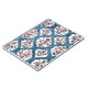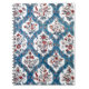 Cool and colourful vintage floral design featuring clusters of hand-drawn bohemian coral, blue and grey flowers on white background in an elegant blue quatrefoil pattern.