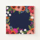 Square spiral recipe notebook printed with a frame of hand-drawn flowers in orange, coral red, hot pink, and white. Add your name in white letters against dark blue. Recipes is written across the floral recipe book in a charming white brush script.
