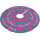 A fabulous Christmas tree skirt with a boho hippie appearance. In trendy pink and green, the patterned tree skirt displays the words 'Merry Christmas' in elegant script typography. Personalise with your name or other text, which will appear three times at the edge of the tree skirt.