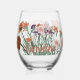 Colourful Boho Pretty Spring Flowers +Custom Name Stemless Wine Glass