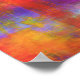 A multicolored abstract painting created with bold and lively brushstrokes. Colours in this artwork include purple pink red orange and green.
