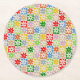 Colourful Bold Aesthetic Chequered Flower Pattern Round Paper Coaster