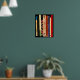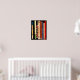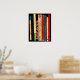 This fine art photography poster features a shelf of colourful books. They form an interesting abstract vertical geometrical composition in colours of red, blue, green, yellow, purple, beige, tan and black. The original photographic image has been digitised to create a painterly effect.