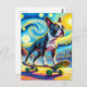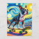 Colourful Boston Terrier Skateboarding Van Gogh Postcard