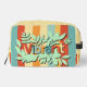 A bold and vibrant design featuring tropical leaves layered over a retro-striped background. The word "Vibrant" stands out with a stylish, eye-catching 3D effect