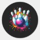 Colourful Bowling Art Classic Round Sticker