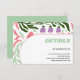 This enclosure card showcases a colourful display of retro flowers and colourful branches, perfect for a wedding with a touch of nostalgia. The coral peach frame elegantly surrounds your personalised text, while behind it there are branches adorned with retro folklore flowers. On the reverse side, a solid mint green colour adds a refreshing touch. The word "Details" is prominently displayed in bold typography, ensuring that all the important information stands out.