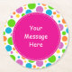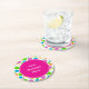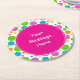 Colourful Bright Dots Pattern Pink Custom Text Round Paper Coaster