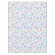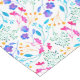 Hand painted vibrant watercolour flowers reworked into a repeating pattern. Bold pinks and purples, flashes of blue and golden yellow stand out against the white background. A rainbow of colours to brighten up a room.