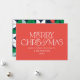 Colourful bright fun Merry Christmas geometric typography script holiday design. Red, green, navy blue and pink colorway.