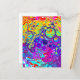Blue, Purple, Yellow, Red, Green pour painting style digital fluid art post card.