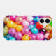 This phone case features a fun and cheerful design packed with a variety of colourful round beads and balls. It showcases a rich visual world where glossy, smooth surfaces and sparkling, glitter-filled textures mix and mingle. The vibrant colours of red, pink, yellow, green, blue, and purple shine like jewels, bringing a boost of joy every time you hold your phone.