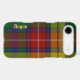 Great looking iPhone 6 Plus case tough phone case done in a traditional Scottish tartan plaid, in the colourful Buchanan Clan plaid. Light yellow text running vertical up the left side is ready to personalise. Perfect way to protect your smart phone, and makes a great gift idea.