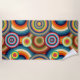 This beach towel has a Bauhaus design of different groups of concentric circles in 1970s colours.