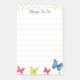 Lined Post_it Notes with multicolored butterflies and gold metallic look confetti dots on white background. Things to Do, List to do, etc. Butterflies symbolise transformation from within!