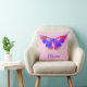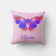 A funky splatter paint butterfly watercolor pattern with yellow, red, aqua, purple and pink swash brush strokes. This cushion is perfect for a girls bedroom with the ability to personalise this gift by using the Add your name template changing Olivia to a name of your choice. The back of this cushion has an pretty colourful, artsy, splatter paint butterfly repeating pattern. Modern colourful butterflies Illustration original artwork by artist Catherine Sweetman