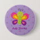 Personalised Button featuring a colourful butterfly with a beautiful purple floral background. Cute and fun design for special for girls. Special for parties and baby showers.