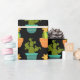 Cool cactus succulent plants pattern gift wrap with accents of orange and yellow.