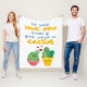 This colourful blanket features two fun cartoon cactus in love, with three little red hearts on a white background. The caption, in calligraphy blue and all caps yellow fonts, reads I'd still hug you even if you were a cactus.