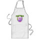 Stylish white chef's apron, with colourful graphics of a purple, green, and pink oval, with a cake, on a pedestal, in the middle. A green banner decorates the top of the oval and has white text ready to personalise for your business. Great apron for professional chefs, restaurants, bakeries catering services, or just for at home, in your own kitchen.