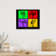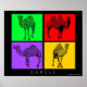Purchase this poster of camels in colours of green, red, purple and yellow.
