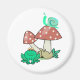 Hang your kids artwork, on the refrigerator with this colourful childrens magnet. A couple of muted red mushrooms, a green frog, and teal snail are sure to bring smiles to any age child. Sweet kids artwork to brighten up any refrigerator.