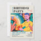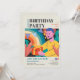Invite your guests in style with this colourful cartoon birthday party invitation! Featuring a dynamic illustrated character, rainbow backdrops, and festive bunting, this card brings energy and fun to your celebration.