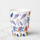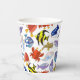 Fun and colourful paper cups, with cartoon style graphics of fish, shells and shell fish.