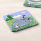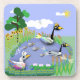 Colourful cartoon style pond with geese and ducks coaster