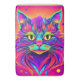 A artwork of a colourful cat head with yellow eyes on a purple background (This Design Made With AI). Place Order Today and Embrace the Joy of Shopping!