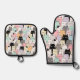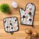 Colourful Cat Pattern Modern Kitty Lover Oven Mitt & Pot Holder Set