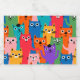 Colourful cats pattern sparkling wine label