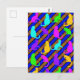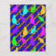 Colourful Cats, stripes, and polkadots original pattern Animal art postcard