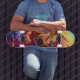 Colourful Celestial Conflict Abstract Painting Skateboard