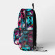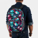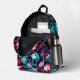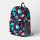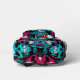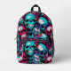 colourful and chaotic pattern of skulls. The skulls are mostly blue with various shades of pink and purple splatters and drips. Some of the skulls have cracked teeth and broken bones, adding to the gruesome and macabre nature of the image. The background is black, which helps to highlight the skulls and make the colours pop.