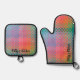 Colourful Checked Pattern Vibrant Fun Colours Oven Mitt & Pot Holder Set